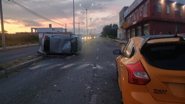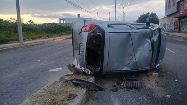 Un auto que era conducido a exceso de velocidad, chocó en la parte posterior de otro vehículo, del fuerte impacto lo volcó, dos masculinos resultaron heridos, el hecho ocurrió la mañana de ayer en avenida Universidad, en la zona oriente del municipio de San Juan del Río.