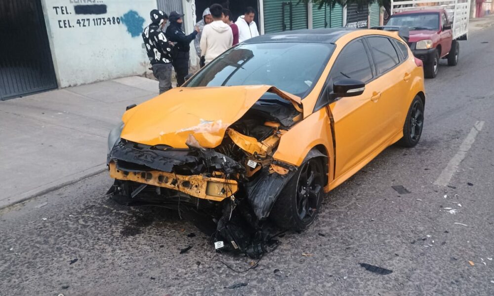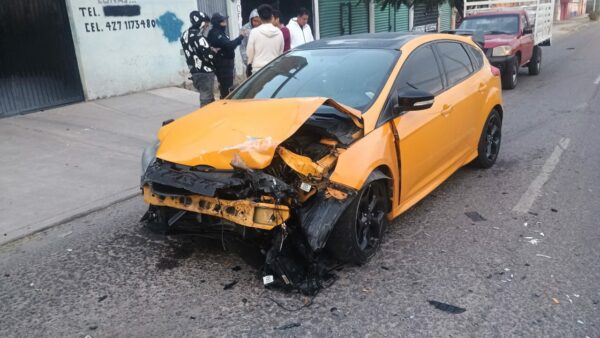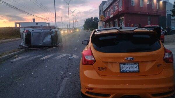 El vehículo marca Ford Focus, en color naranja, con placas de circulación UPU-940-C para este estado, era conducido sobre dicha arteria vial, lo hacía en dirección de sur a norte, sin embargo, el exceso de velocidad en el que era conducido, y un ligero maniobreo al volante, fue suficiente para que chocara de lleno en la parte posterior del vehículo marca Chevrolet Spark, en color gris, con placas de circulación UKJ-840-A para esta entidad, del fuerte impacto el vehículo Spark quedó volcado y recostado sobre uno de sus laterales, en tanto el vehículo Ford Focus, quedó varado sobre sus mismos ejes, ambos vehículo con daños materiales sí de consideración.