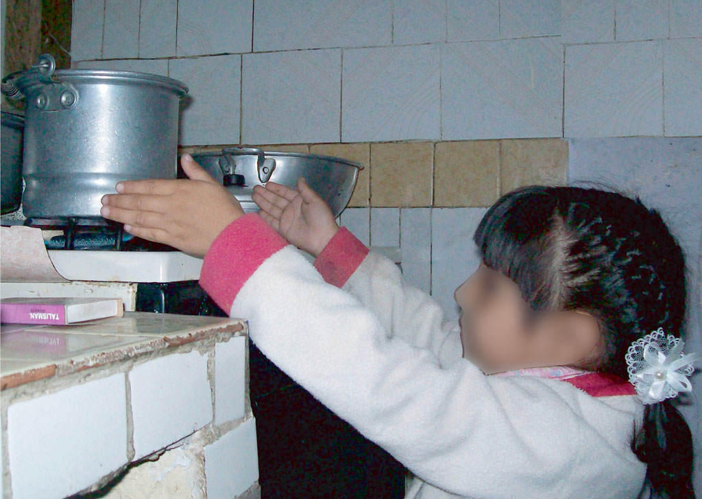 - Mientras se cocina o transporta líquidos o alimentos calientes, no cargar a niñas o niños
