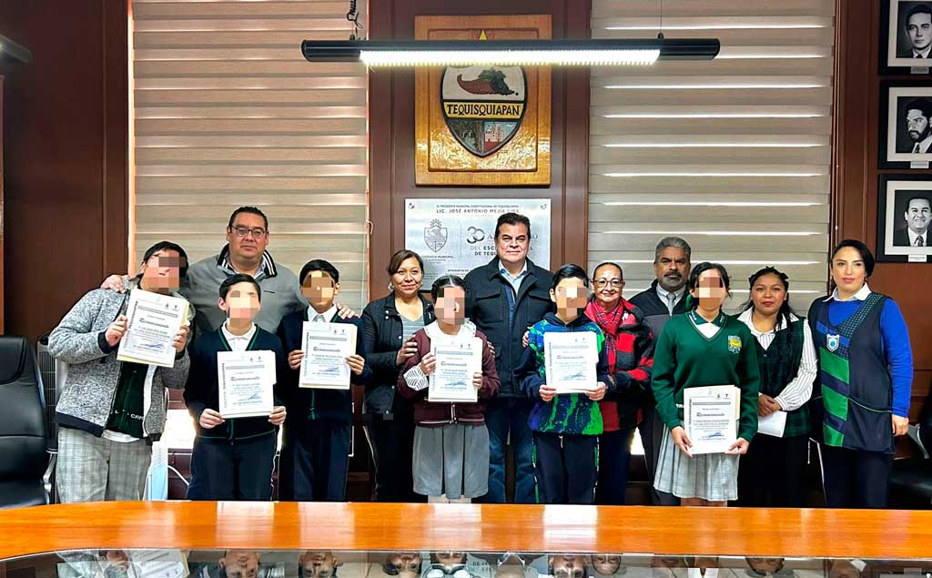 El alcalde de Tequisquiapan, Antonio Mejía Lira, reconoció a los estudiantes tequisquiapenses que acudirán al Nacional de Matemáticas de la “Olimpiada Gauss” en Mazatlán, Sinaloa y que pertenecen a los colegios: Motolinía, Primaria Niños Héroes, Centro Educativo Tiyoli y Secundaria General Cerro de las Campanas.