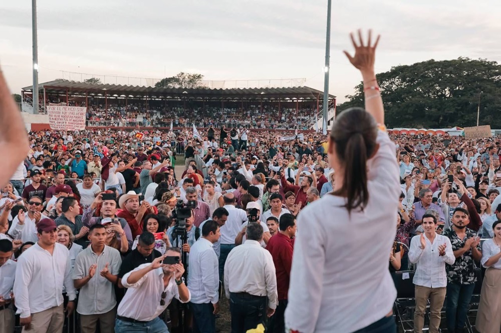Acompañado por la gobernadora de Campeche, Layda Sansores San Román, la precandidata única morenista a la Presidencia de la República encabezó un acto multitudinario en el campo de beisbol «Alfonso Durán Reyes», donde más de 4 mil 500 personas vitorearon “¡Es un honor estar con Claudia, hoy!” y “¡Claudia, hermana, Champotón te ama!”.